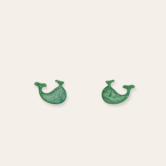 Inlay statement studs - green abstract flowers "Svala" #277