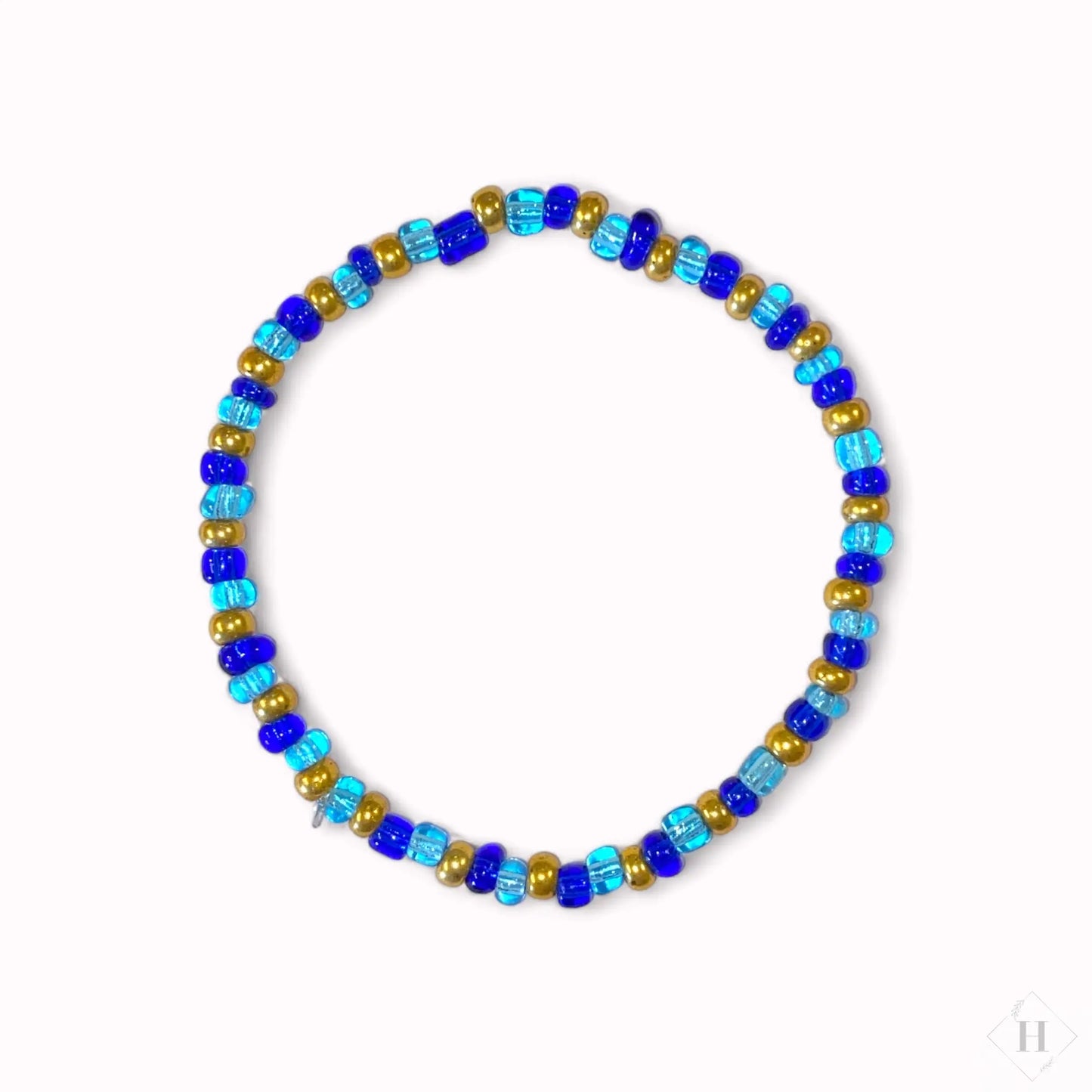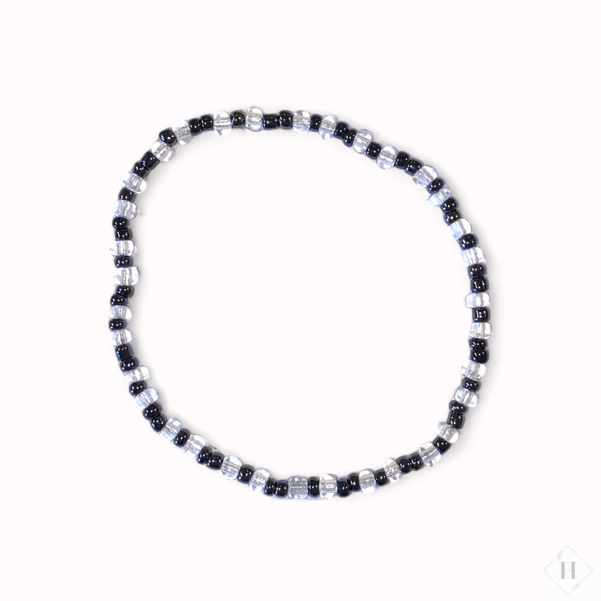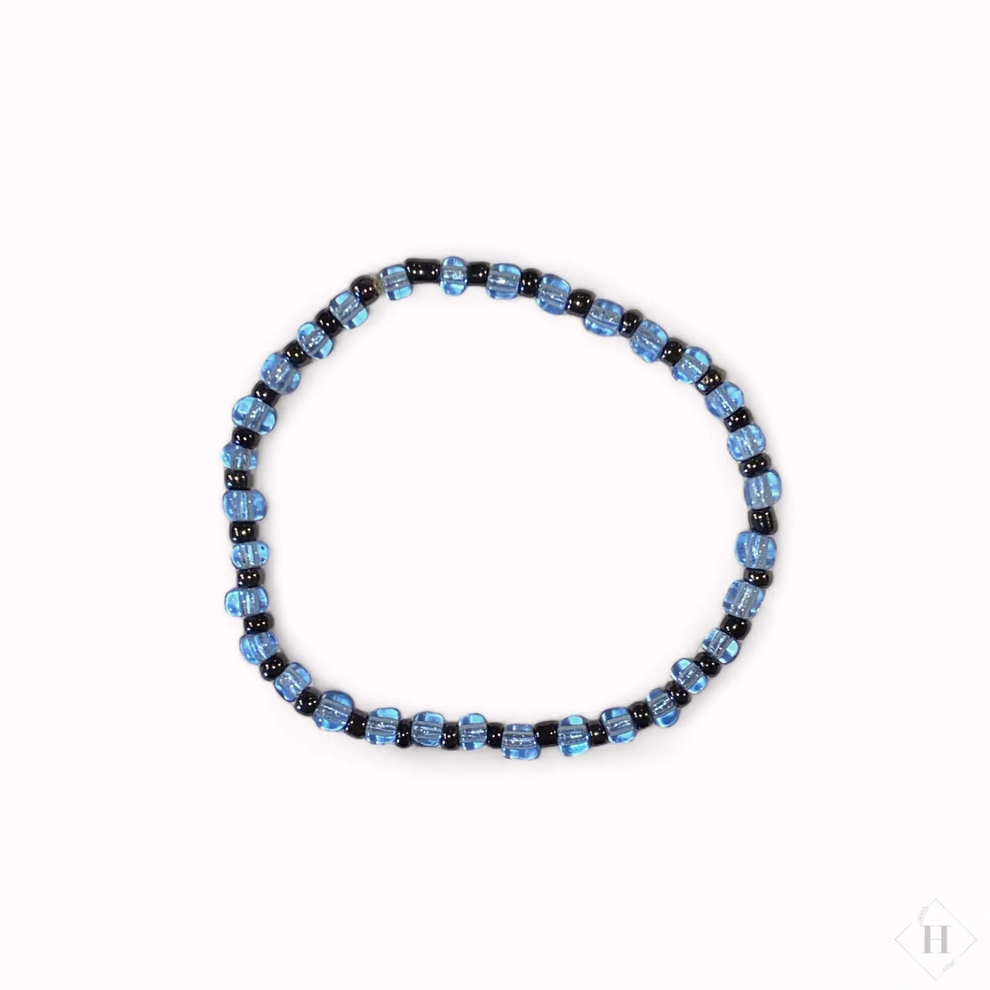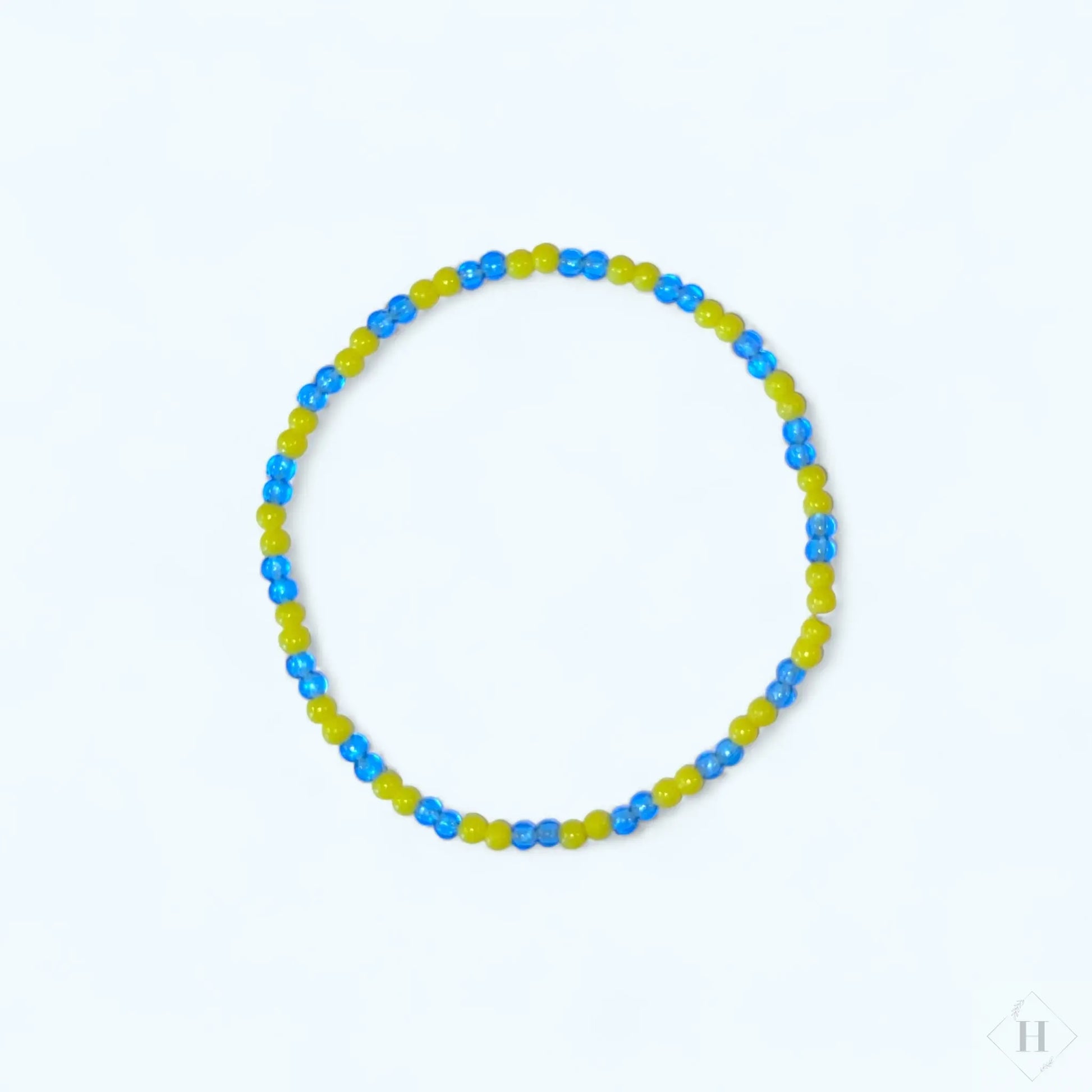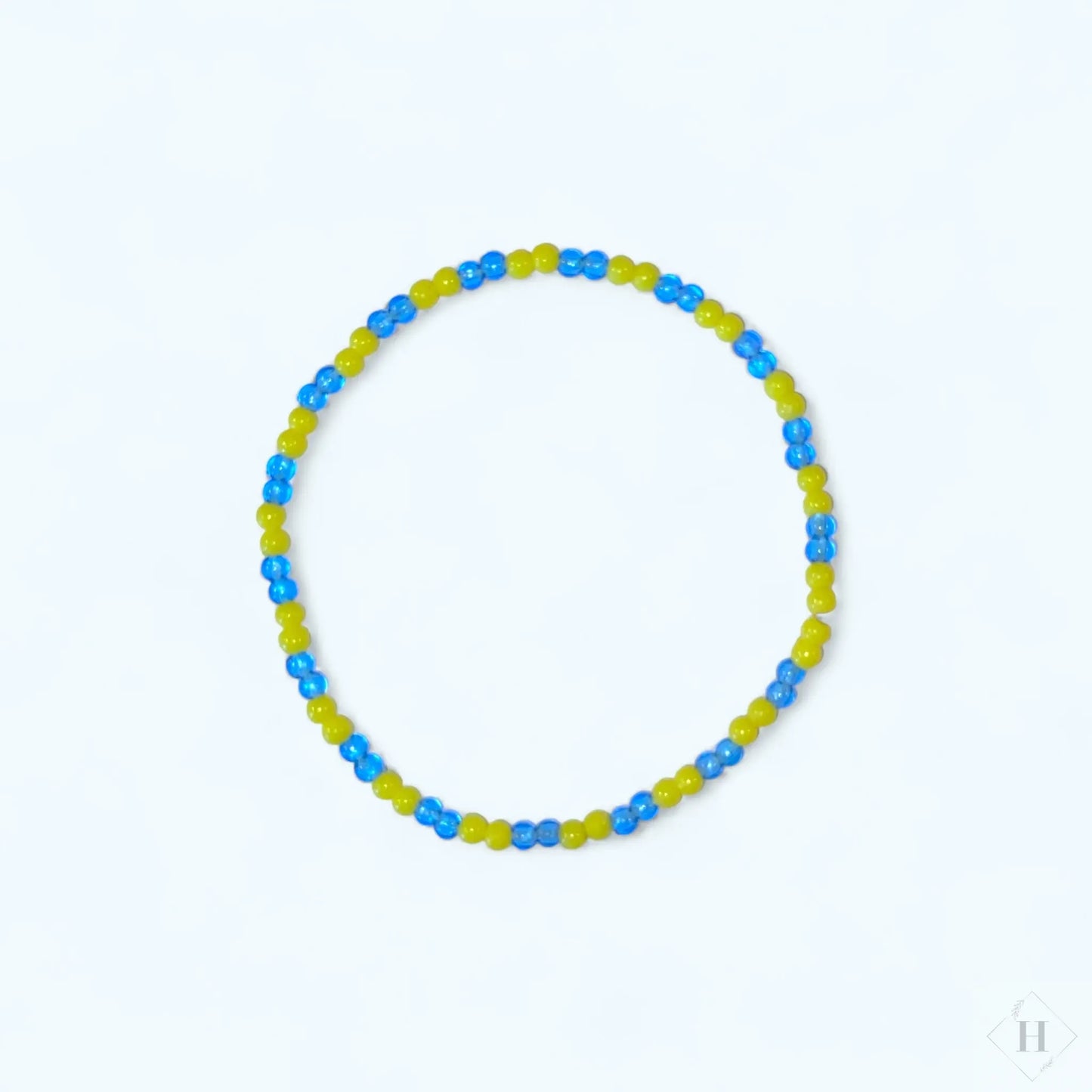 Armbåndene er lavet på elastisnor og knuden har fået en klat lim, så den holder ekstra godt.