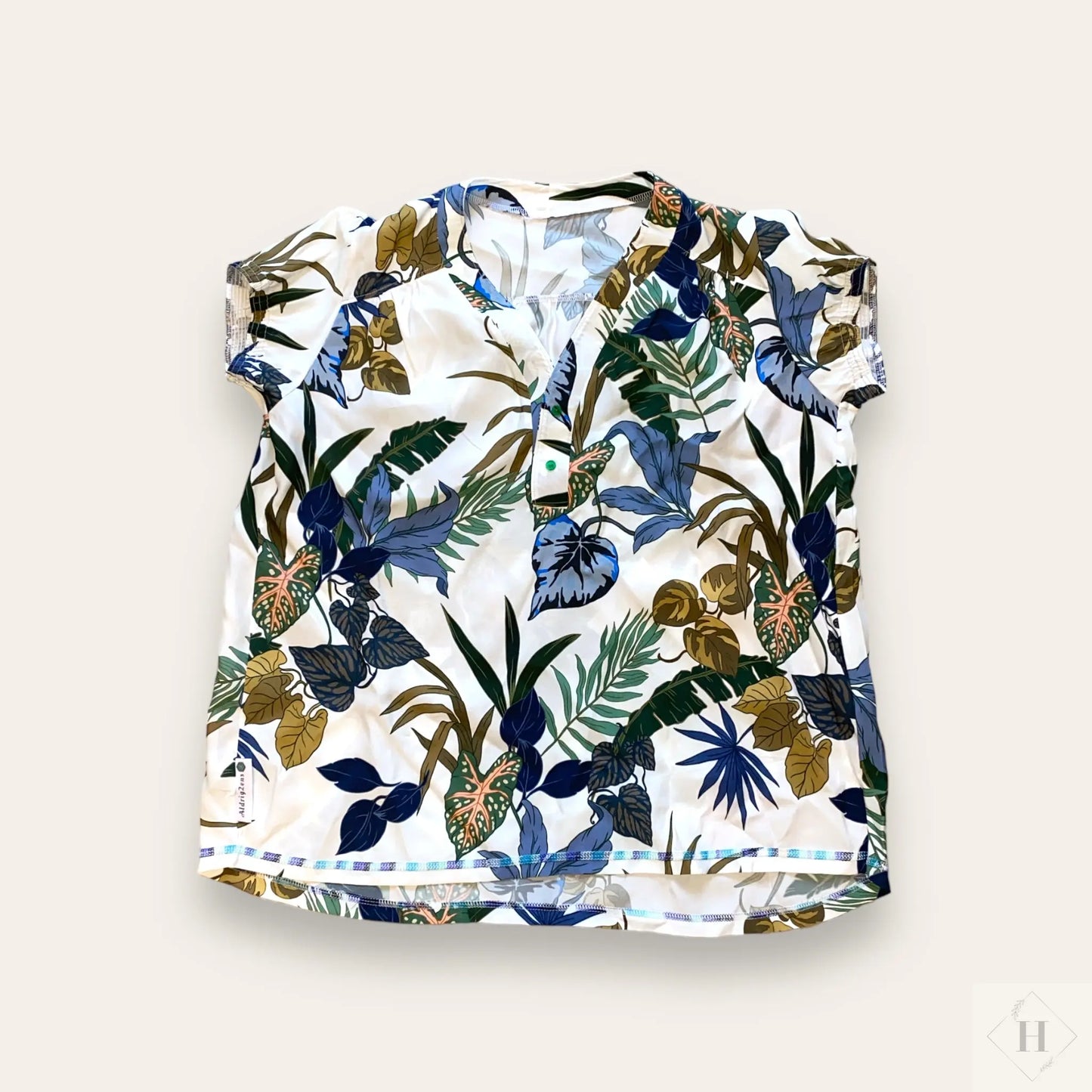 Lækker luftig bluse i chiffon lign stof med fin detalje med v hals