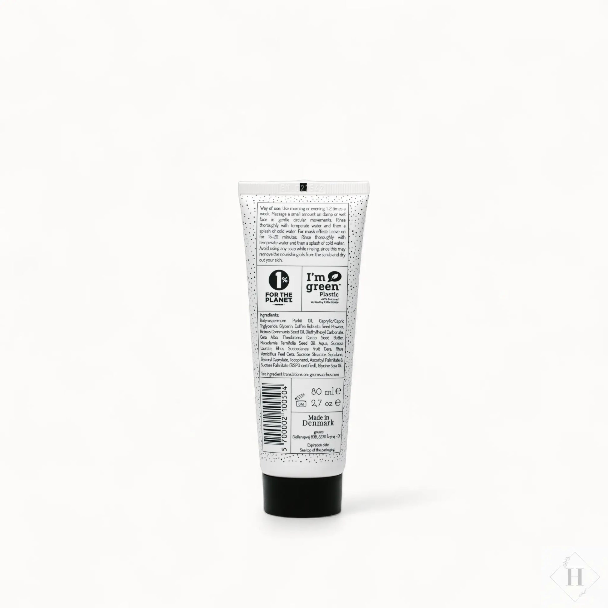Naturlig ansigtsscrub og maske i ét – med upcycled kaffegrums og nærende planteolier.