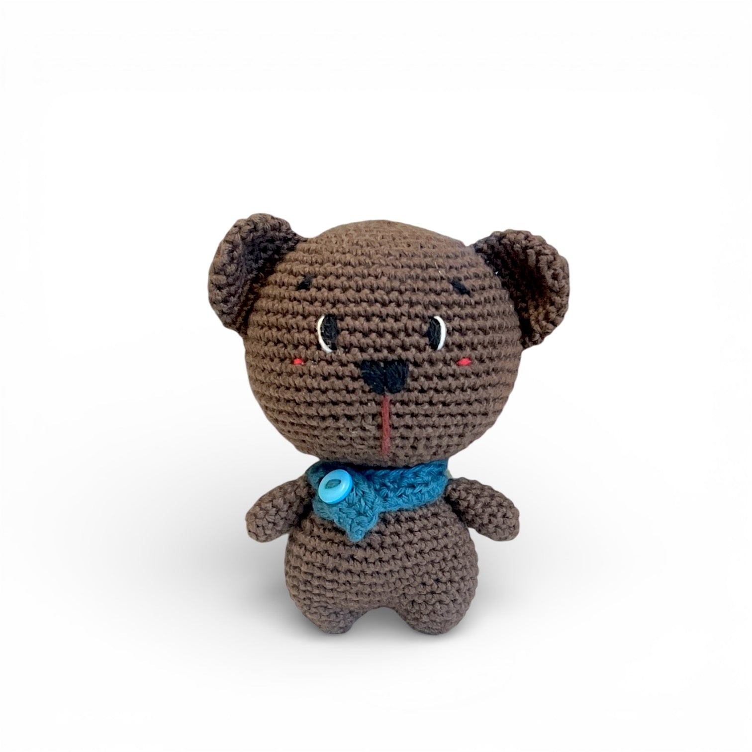 Denne hæklede bjørn er skabt af en dansk kunstner i hendes eget værksted, hvor hver bamse formes med omhu. Det er ikke bare en hæklet bjørn - det er et stykke dansk håndværk til din hverdag.