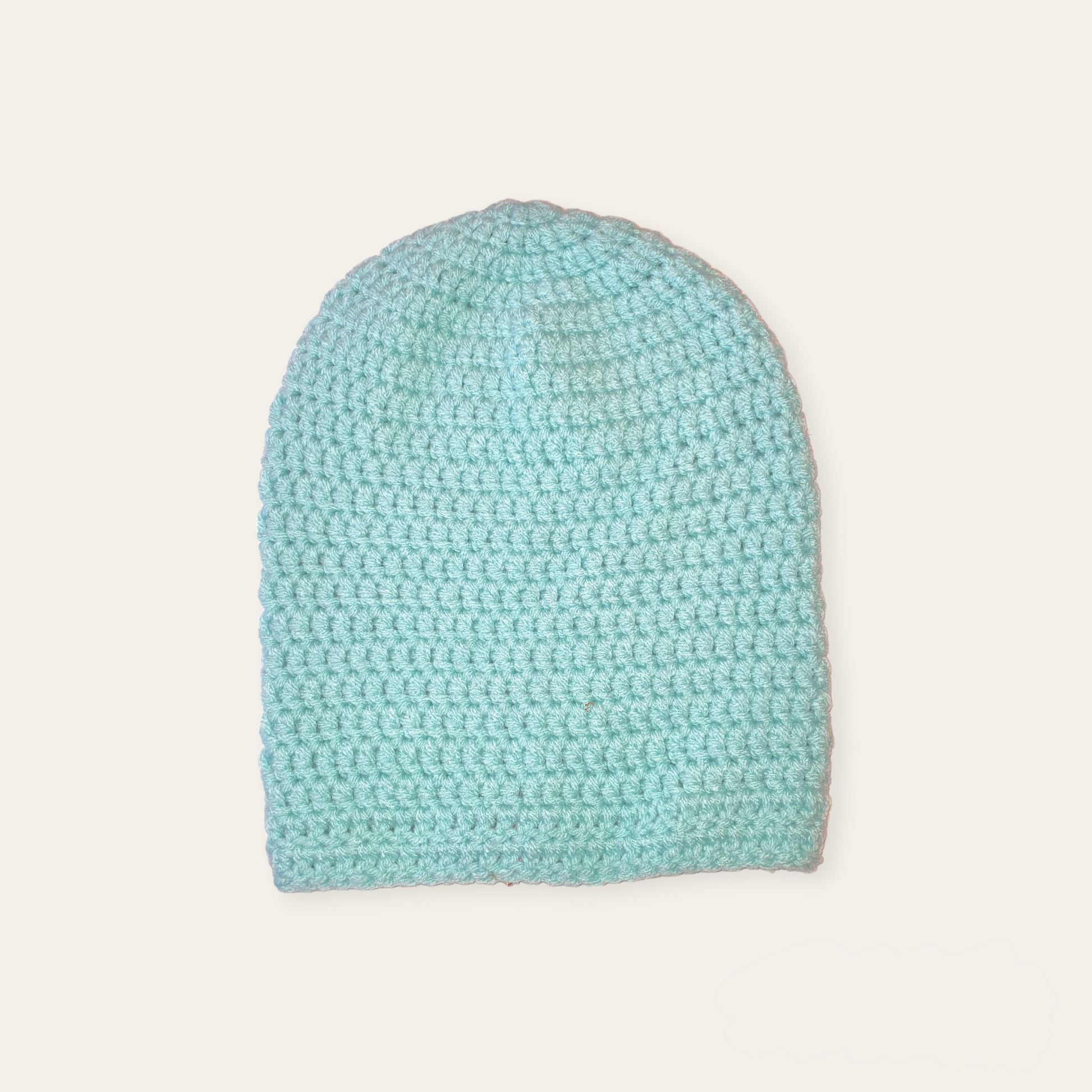Flot og blød hue, hjemmehæklet af Gitte Bramm i lækkert akryl garn - klar til at holde dine ører varme.