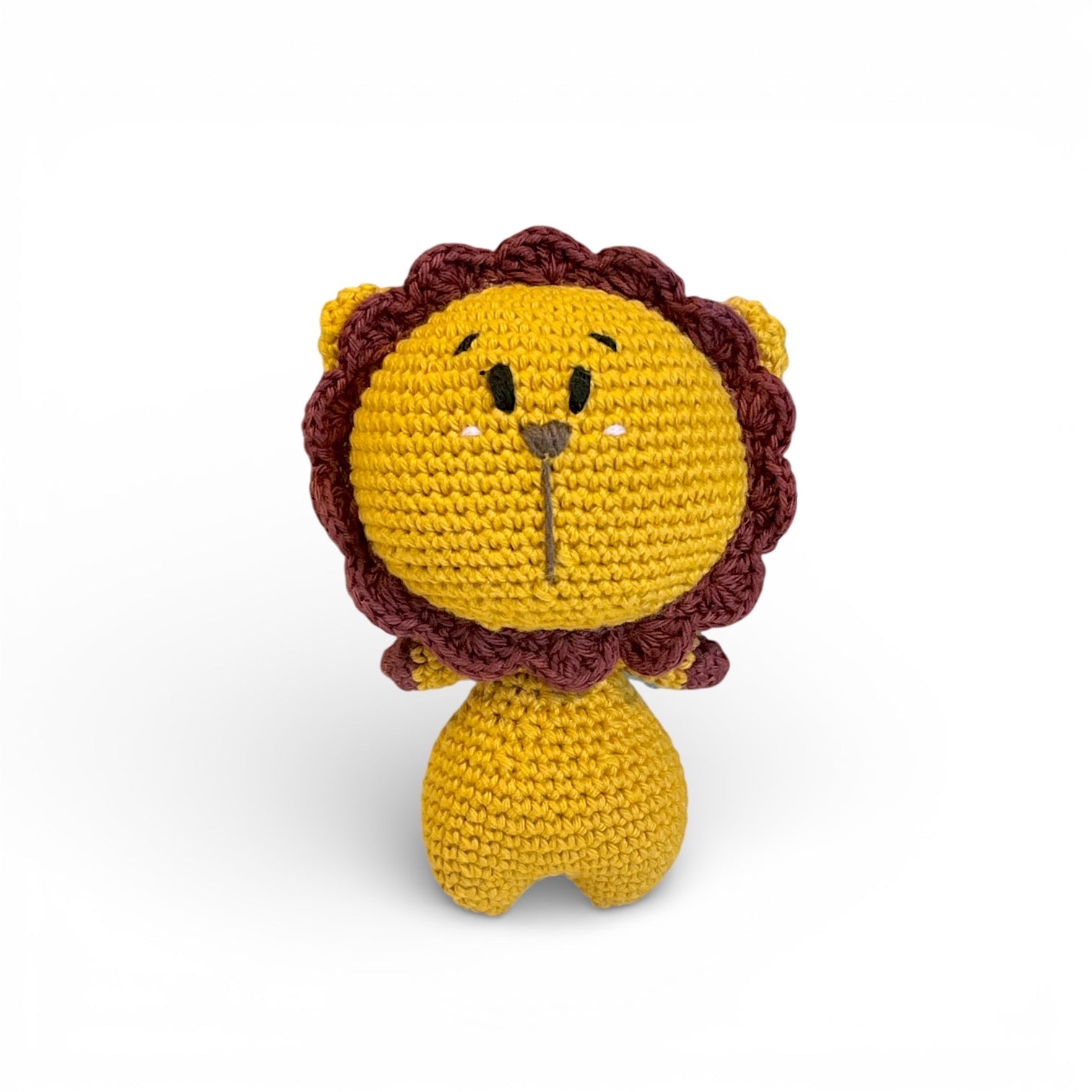 Denne søde hæklede løve er skabt med kærlighed og omhu af Sara Engel. Med sine 11 cm i længde er den perfekt som krammedyr, pynt eller gave til både børn og voksne, der elsker håndlavede ting.