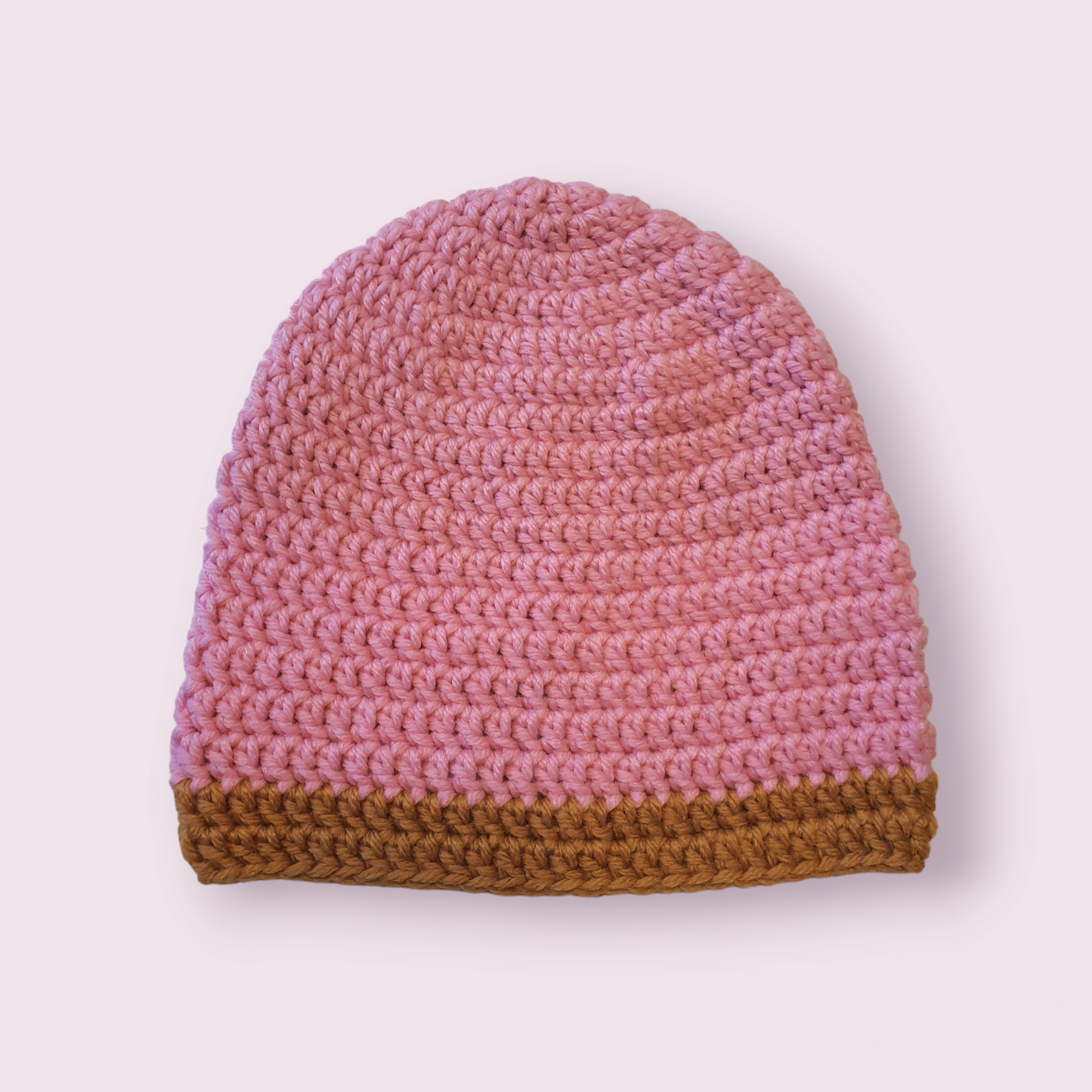 Flot og blød hue, hjemmehæklet af Gitte Bramm i lækkert akryl garn - klar til at holde dine ører varme.