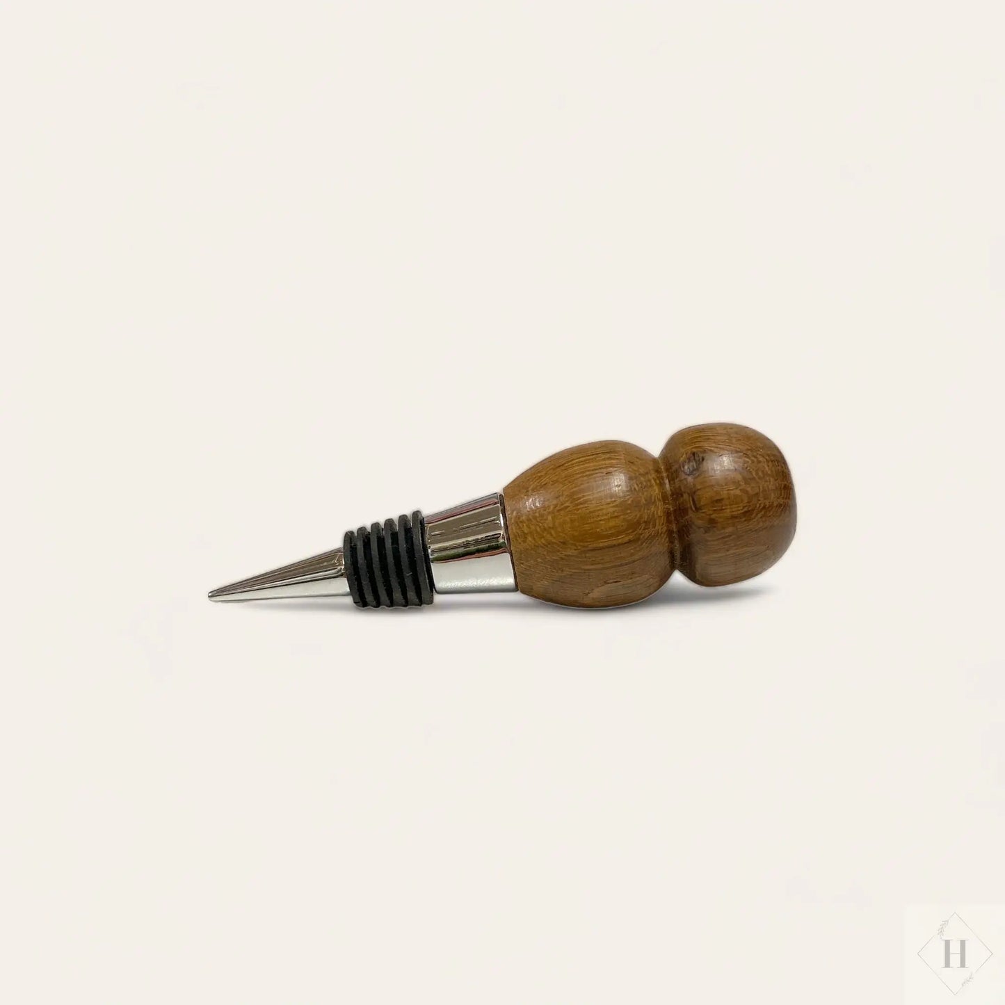 Smuk vinprop med hånddrejet trætop og med forkromet spyd samt gummitætning.