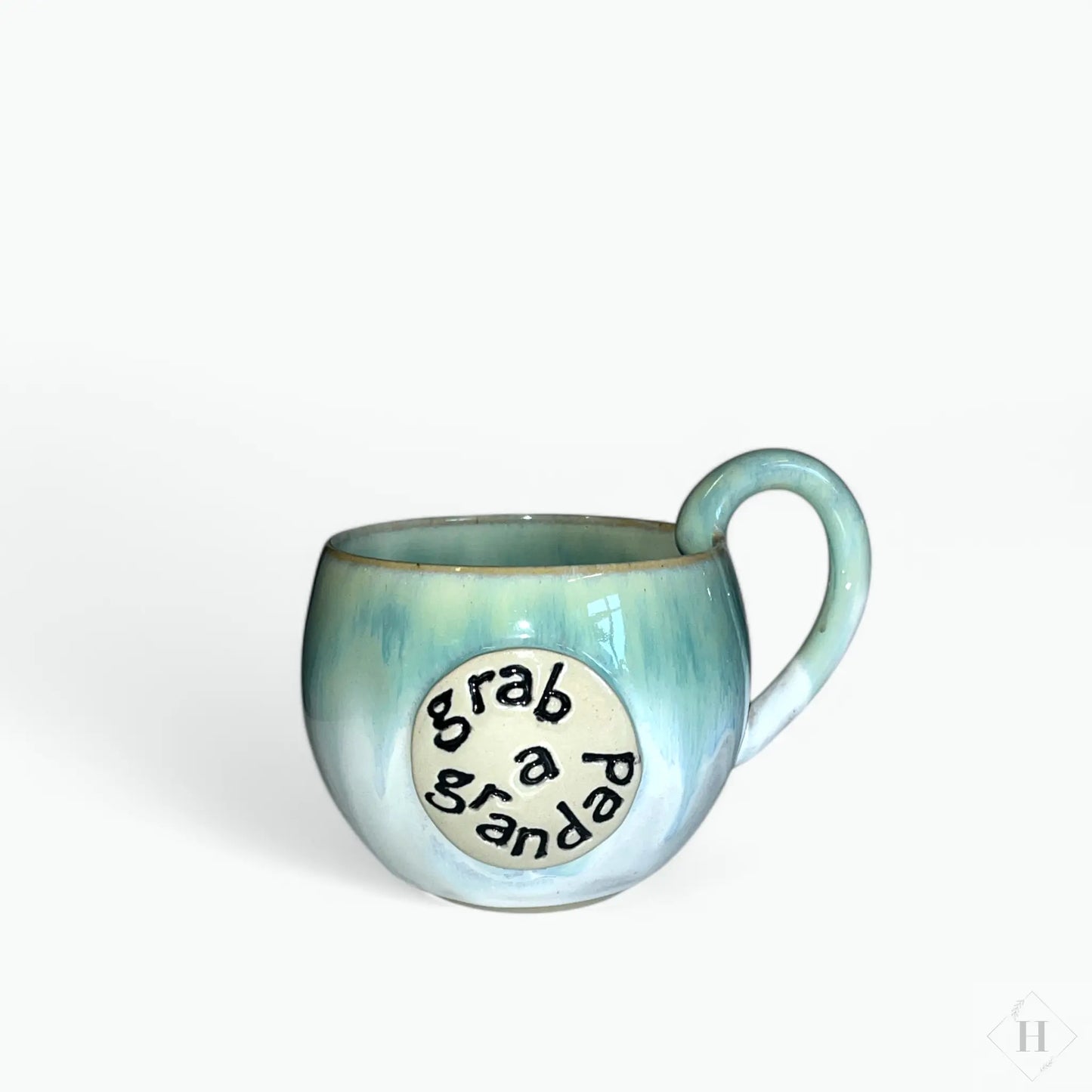 Det fineste krus med dejlig stor hank og skriften ”grab a grandad” i et banner nederst.