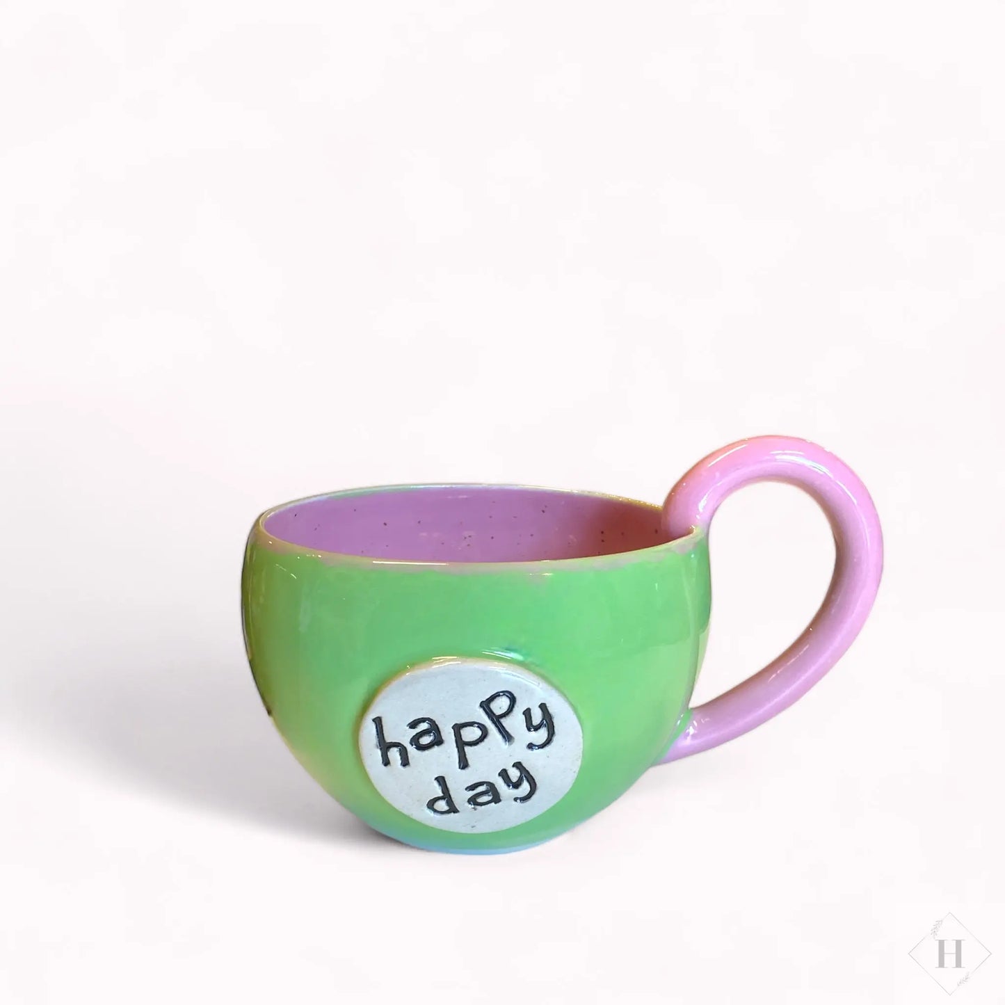 Det fineste krus med dejlig stor hank og skriften ”ork satme” i et banner nederst.