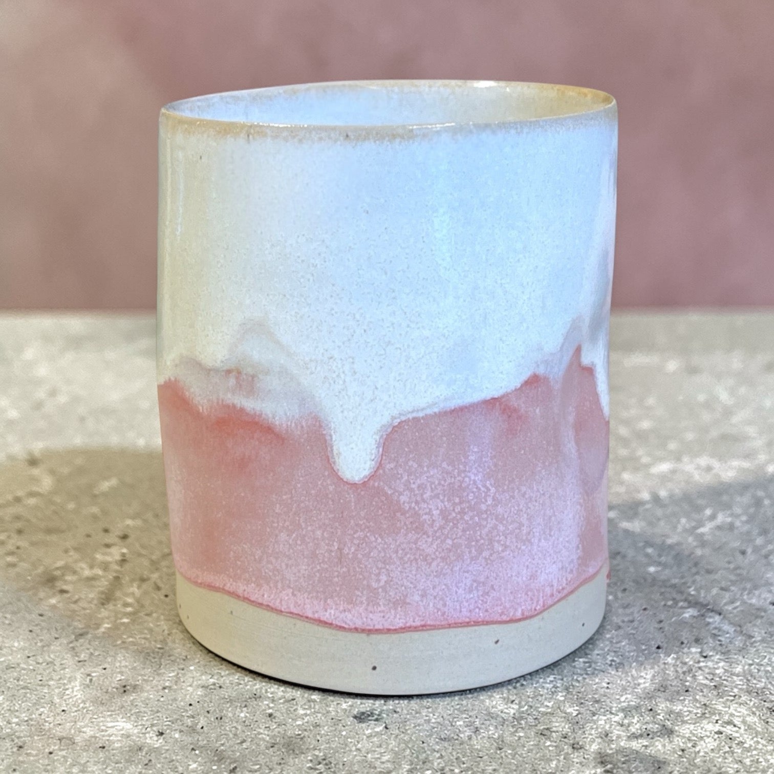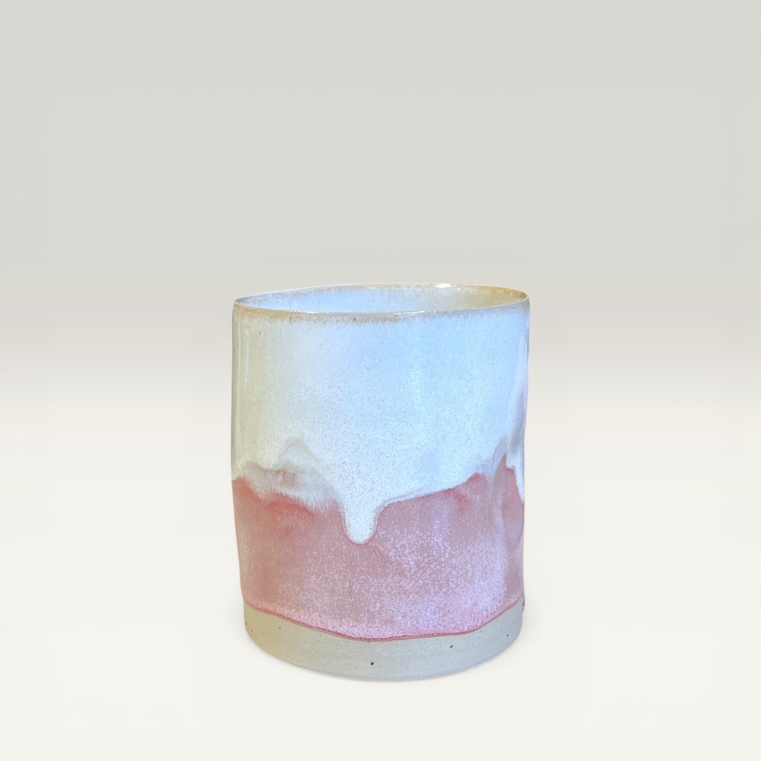 Dette håndlavede klemmekrus i smukke hvid/rosa nuancer er perfekt til din morgenkaffe eller eftermiddagste. Kruset har et lille klem der gør at det ligger perfekt i hånden, og den unikke håndlavede finish gør hvert stykke særligt. Den hvid/rosa glasur giver et blødt, roligt udtryk til dit køkken.