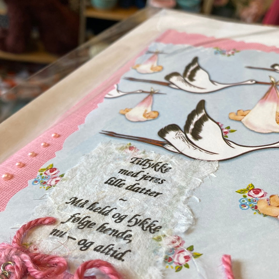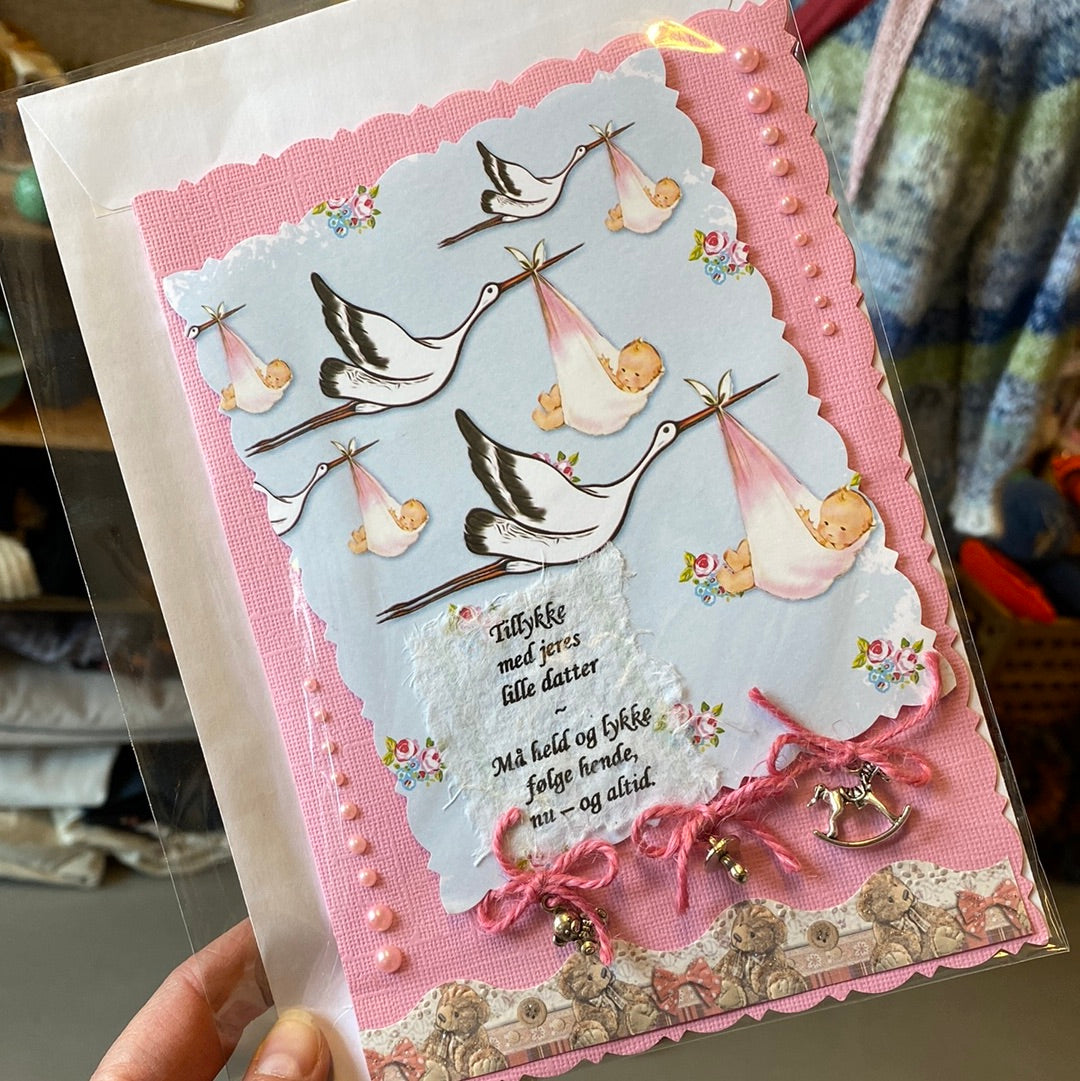 Dobbelt kort, der måler 20x15 cm og er incl kuvert.