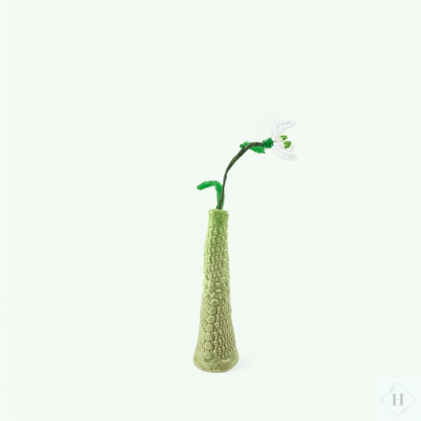 Smuk høj håndformet vase i stentøj, perfekt til en enkelt blomst eller et par grene.