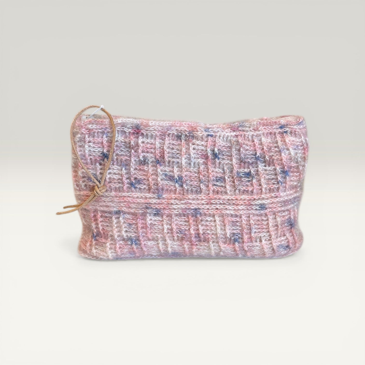 Pungen er hæklet i blød, lyserød silk mohair på nål 1.25 for den fineste finish — silkeblød at røre ved og smuk at se på. Den har et plantefarvet bomuldsfoer, der giver ekstra holdbarhed og beskytter dine ejendele. Hver pung er unik, og små variationer i farve og struktur gør netop din pung til noget helt særligt.