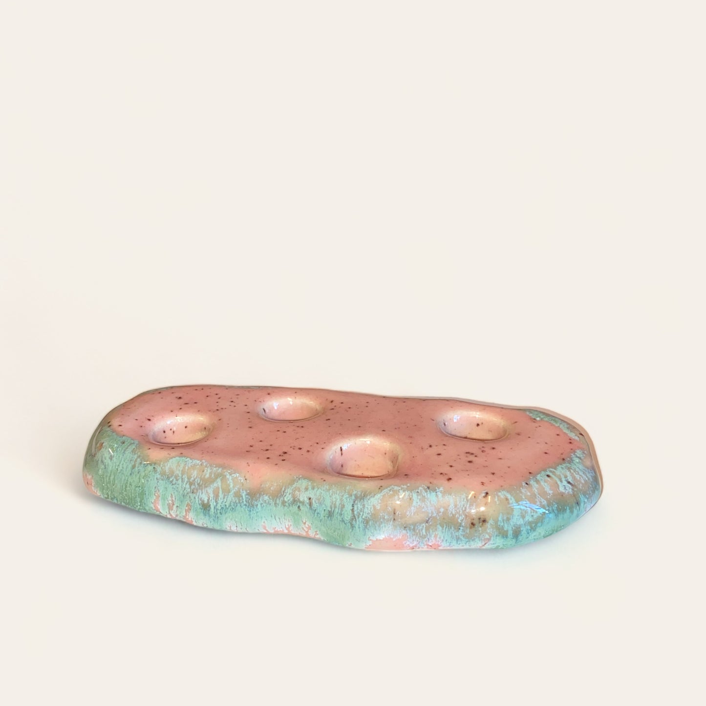 Stagen er organisk i sin form og har en smuk lyserød og grønlig glasur
