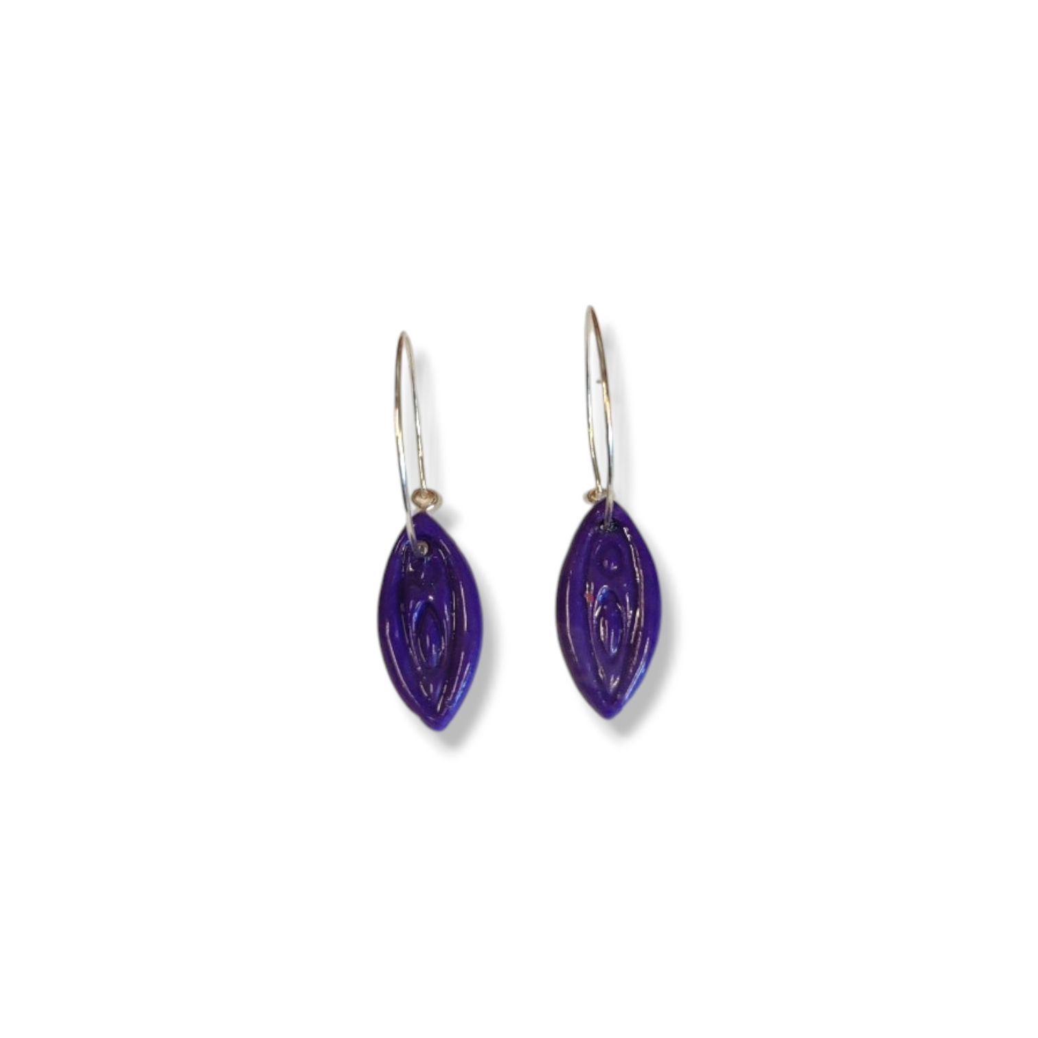 Elegante og feminine vulva øreringe, i en mørk lilla farve.