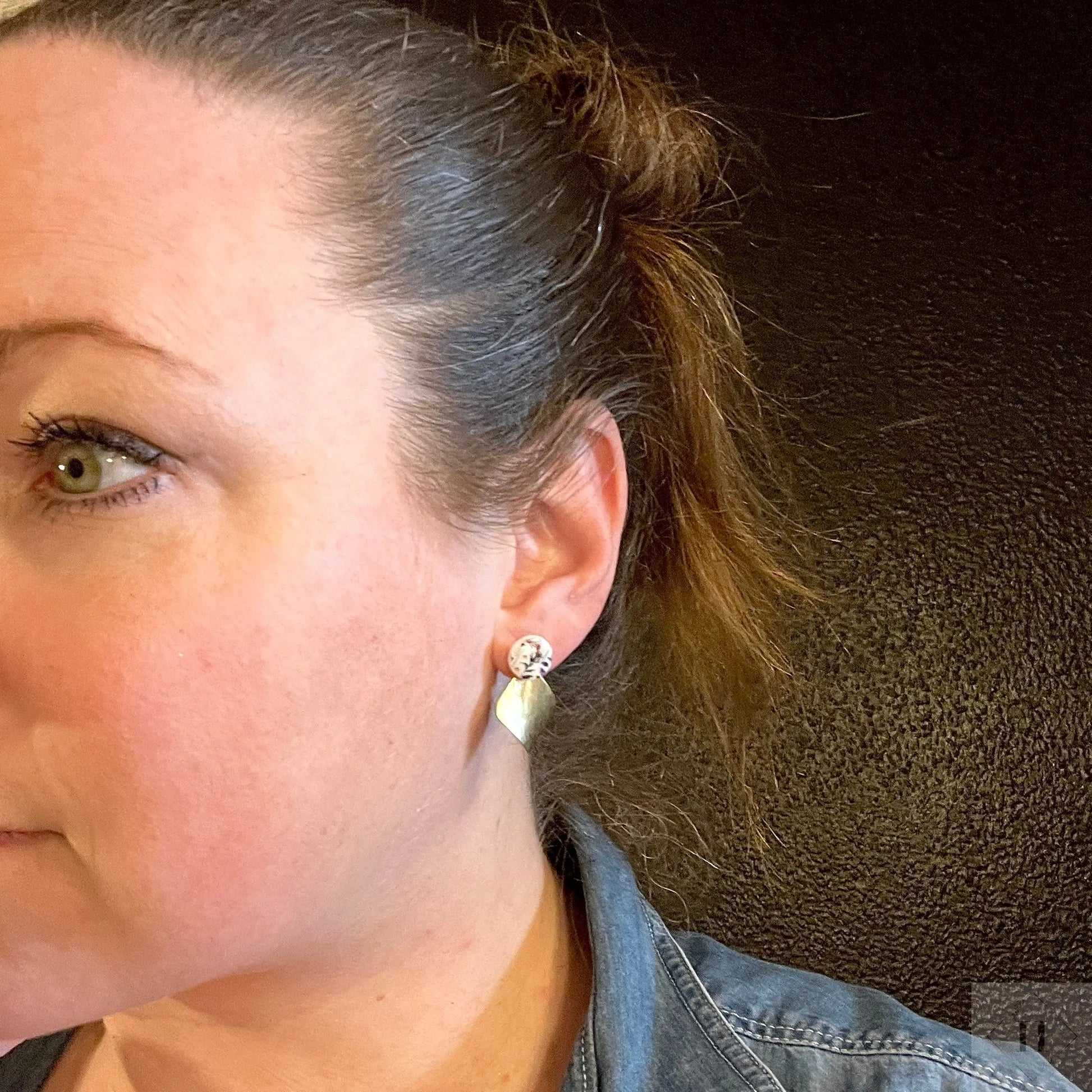 Brug dot og messingstykket sammen. Messingstykket kan sættes både foran eller bagved øreflippen og derved give forskellige udtryk.
