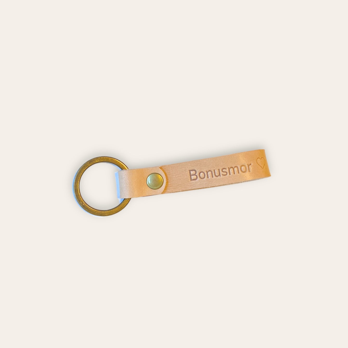 Da nøgleringen er håndlavet, kan jeg ikke garantere at den er helt magen til billedet. Nøgleringen er lavet på forhånd og det er derfor ikke muligt at ændre teksten. Så skal du i stedet for vælge denne her