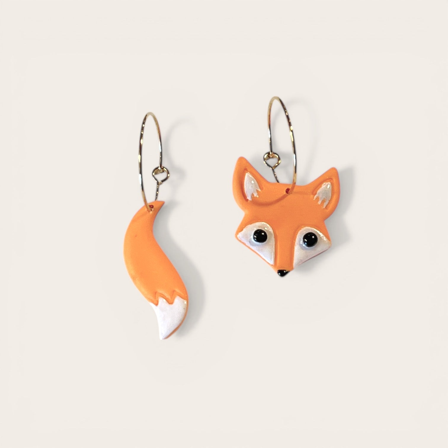 En smuk og legende hoop-ørering med et håndlavet ræv- og halependel — til dig, der elsker smykker med personlighed.