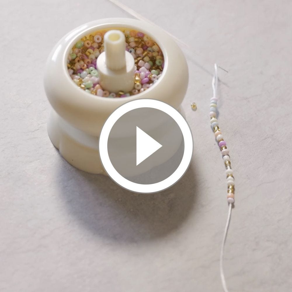 Perlekarrusellen er et nyttigt og hurtigt redskab, når du skal trække mange miniperler på en wiretråd - men ved du hvordan du bruger en? Du sætter først en smykkenål på wiren, og drejer herefter stangen på karrusellen - så kører perlerne op på nålen af sig selv! Det er supersmart og gør arbejdet med perler meget lettere.