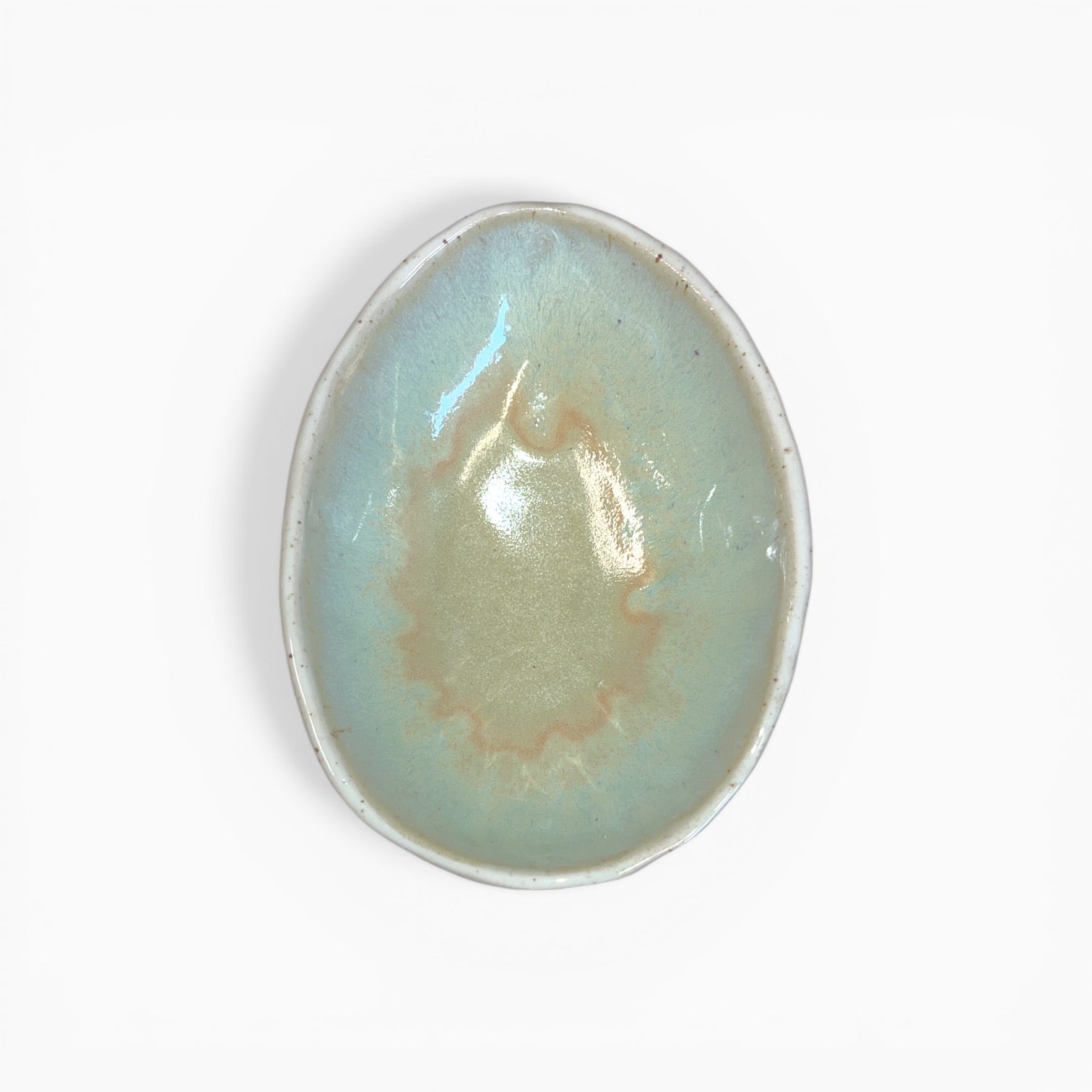 En charmerende håndlavet keramikskål formet som et påskeæg af Clay by Hornstrup, i en lys grågrøn nuance. Skålen er formet i stentøj og brændt ved høj temperatur, så den er både robust og praktisk til hverdagen.