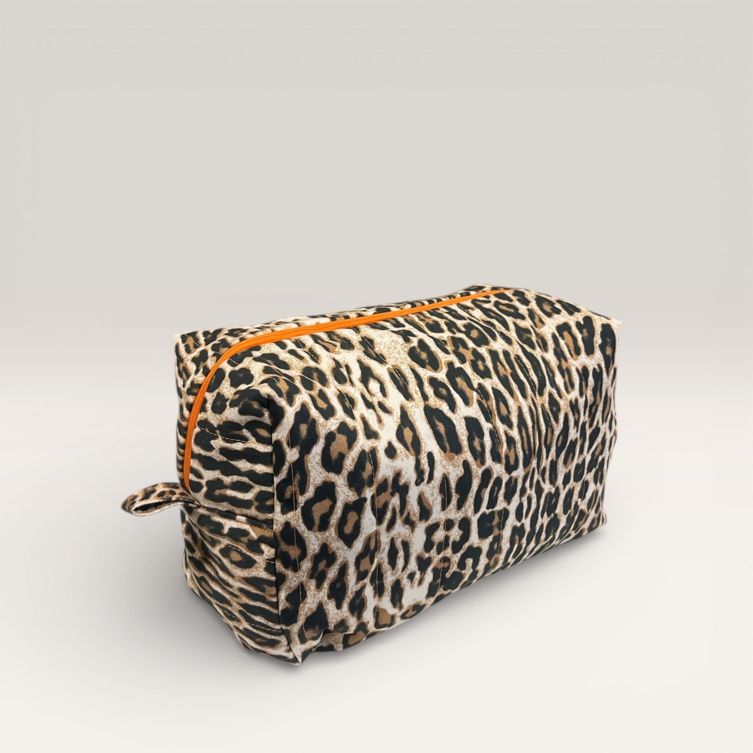 Stor Toilettaske Leopard - Håndlavet Quiltet Viskose