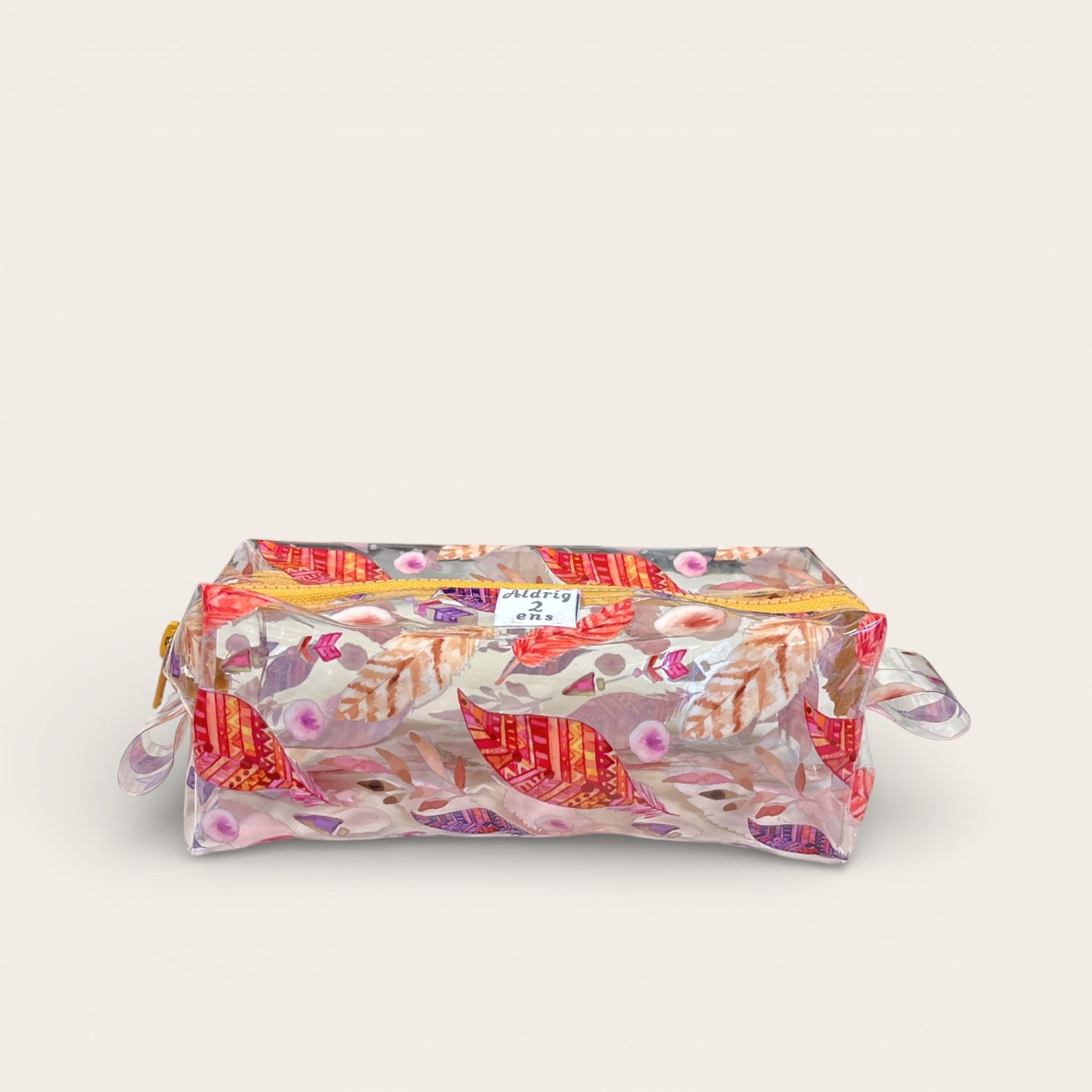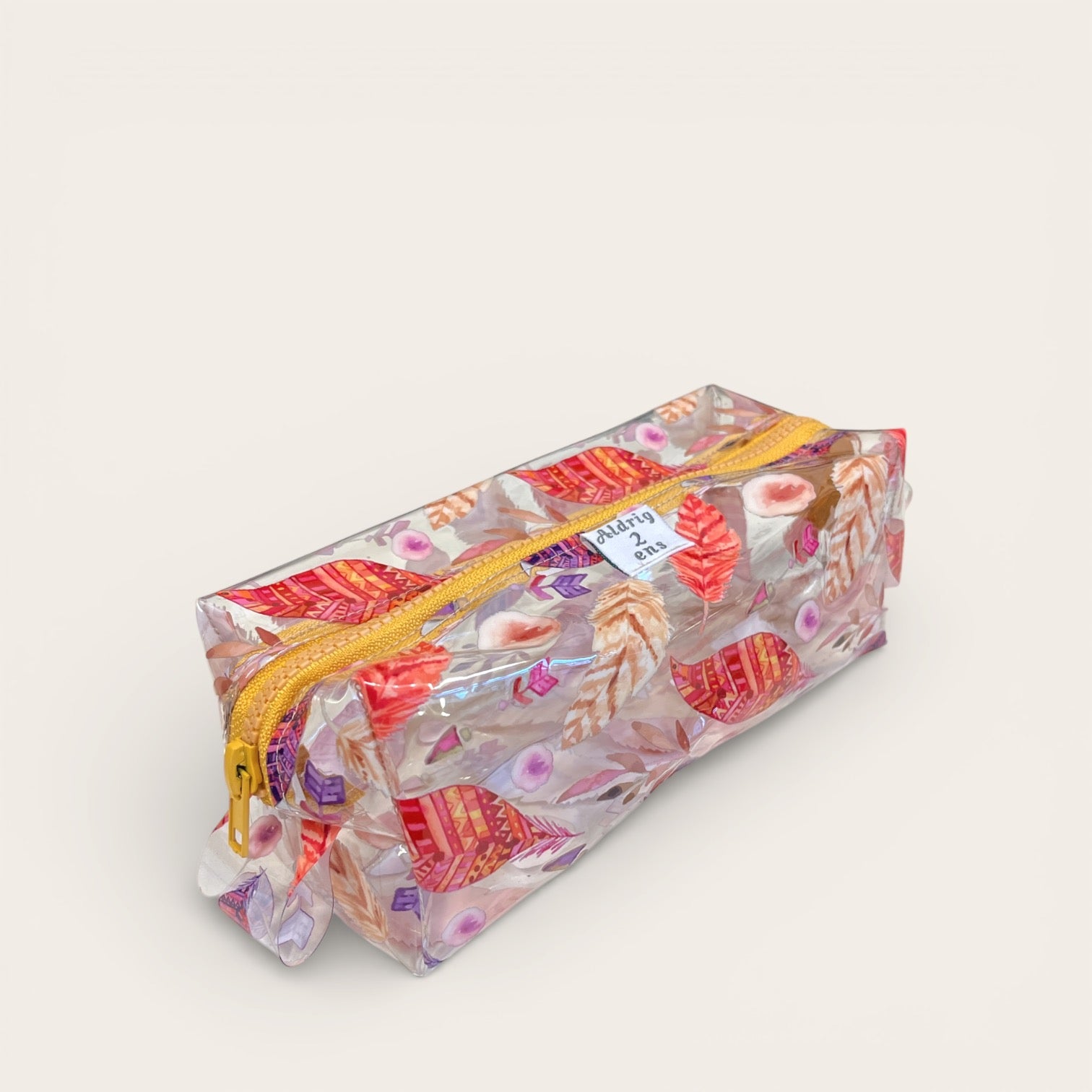 Stort penalhus/toilettaske i vinyl - fjer