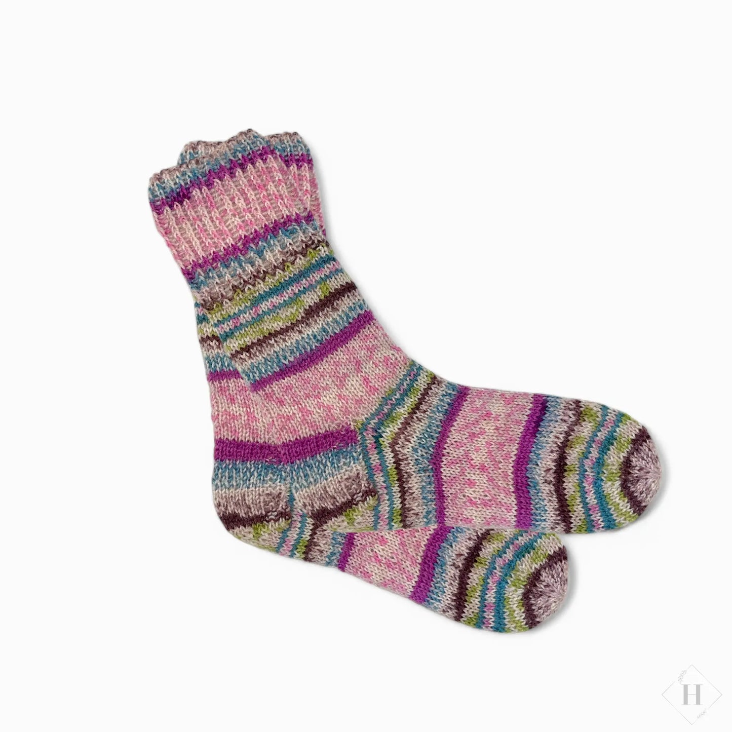Håndstrikkede strømper strikket strømpe garn i 70% uld 30% polyester.