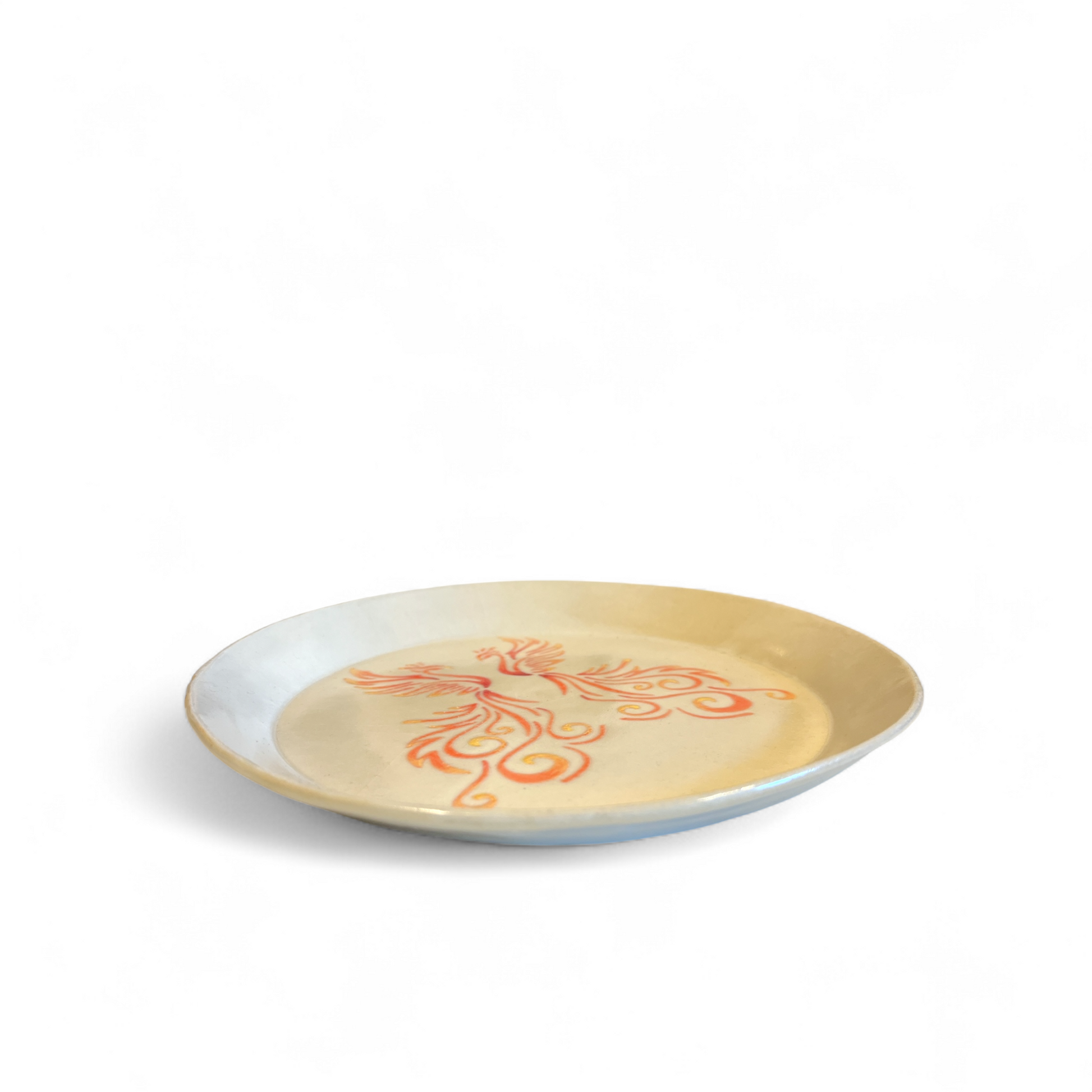 Smukt enkelt tallerken, dekoreret med fugl fønix, glaseret med klar glasur.