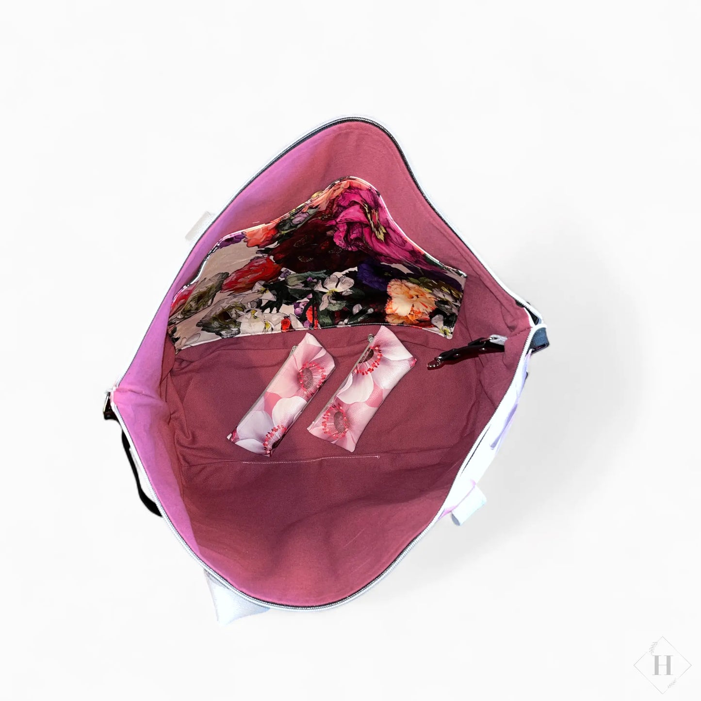 Tasken har et stort rum med plads til det hele samt en indvendig lomme med magnetknap.